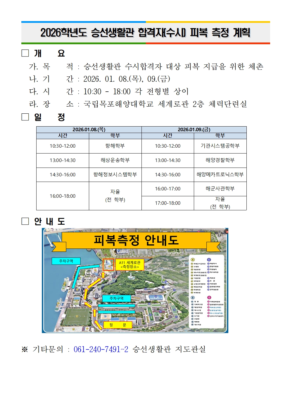 2026학년도 승선생활관 수시합격자 피복 측정 계획