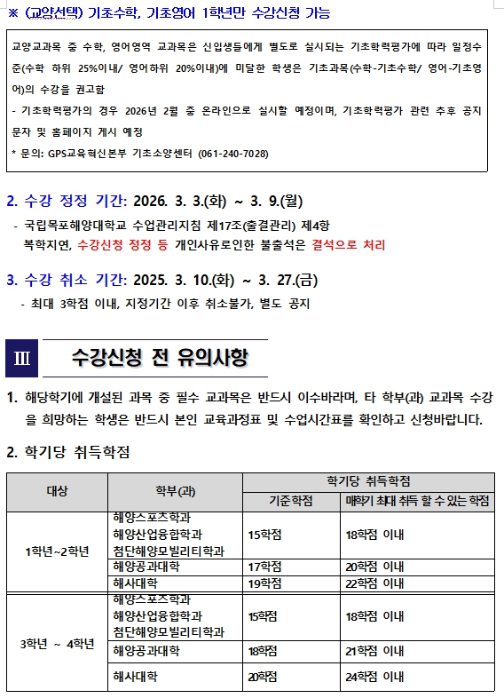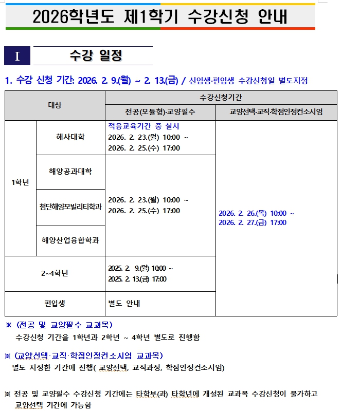 정규시간표는 2026. 2. 2.(월) 공고 예정입니다.